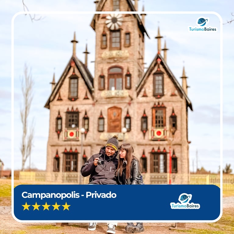 Descubra um dos lugares mais fascinantes e misteriosos da Argentina com um tour privado para Campanópolis, uma cidade medieval única, localizada nos arredores de Buenos Aires. Construída com materiais reciclados e um design arquitetônico excêntrico, Campanópolis oferece uma experiência surreal e encantadora, perfeita para quem ama história, arte e fotografia.