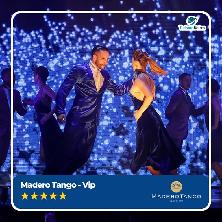 Viva uma noite inesquecível no Madero Tango, um dos espetáculos mais icônicos de Buenos Aires! Localizado em Puerto Madero, um dos bairros mais modernos e sofisticados da cidade, o Madero Tango oferece um show de alto nível que combina dança, música ao vivo e uma produção impressionante, contando a história do tango de forma emocionante.