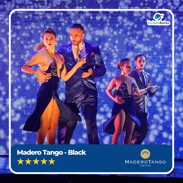 Desfrute de uma experiência exclusiva no Madero Tango, um dos shows mais renomados de Buenos Aires! No Setor Black+, você terá uma mesa individual nas primeiras filas da plateia, garantindo uma vista privilegiada para o espetáculo e uma imersão completa na magia do tango.